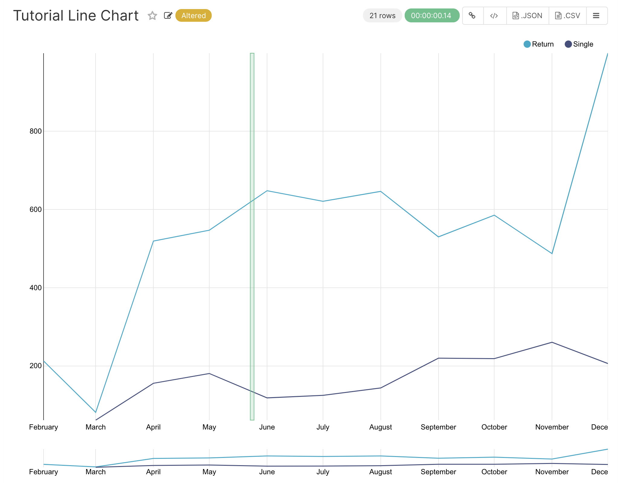 Annotations allow you to add additional context to your chart. In this section, we will add an annotation to the Tutorial Line Chart we made in a previous section. Specifically, we will add the dates when some flights were cancelled by the UK’s Civil Aviation Authority in response to the eruption of the Grímsvötn volcano in Iceland (23-25 May 2011).